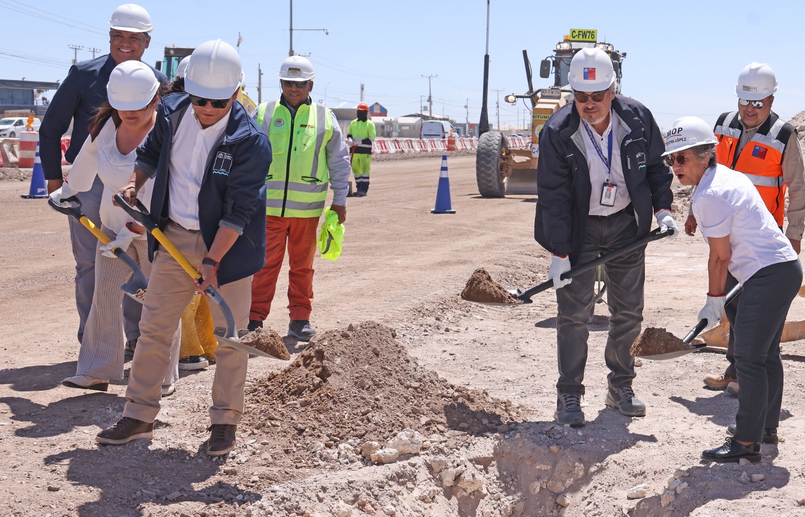 La ministra de Obras Públicas, Jessica López, junto al delegado de la provincia del Loa, Miguel Ballesteros, y al alcalde de Calama, Eliecer Chamorro, dieron el vamos a la construcción de las obras de mejoramiento de la circunvalación de la Ruta 25 y de la Ruta Internacional 21-CH que tienen por objetivo mejorar la calidad de vida de los habitantes de Calama y potenciar el desarrollo de la región.
