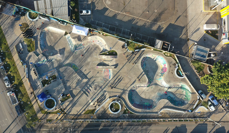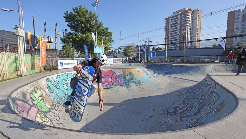 El skatepark de Huechuraba se construyó en el marco de las mitigaciones solicitadas por los vecinos por la construcción de la autopista AVO I, y es un espacio deportivo de más de 3.400 metros cuadrados, y está equipado con rampas, bowls, mobiliario urbano, iluminación, áreas verdes y juegos infantiles. Este skatepark no solo cumple una función recreativa, sino que se integra como infraestructura deportiva de alto estándar, habilitada para la práctica de skate y BMX a nivel formativo y competitivo.