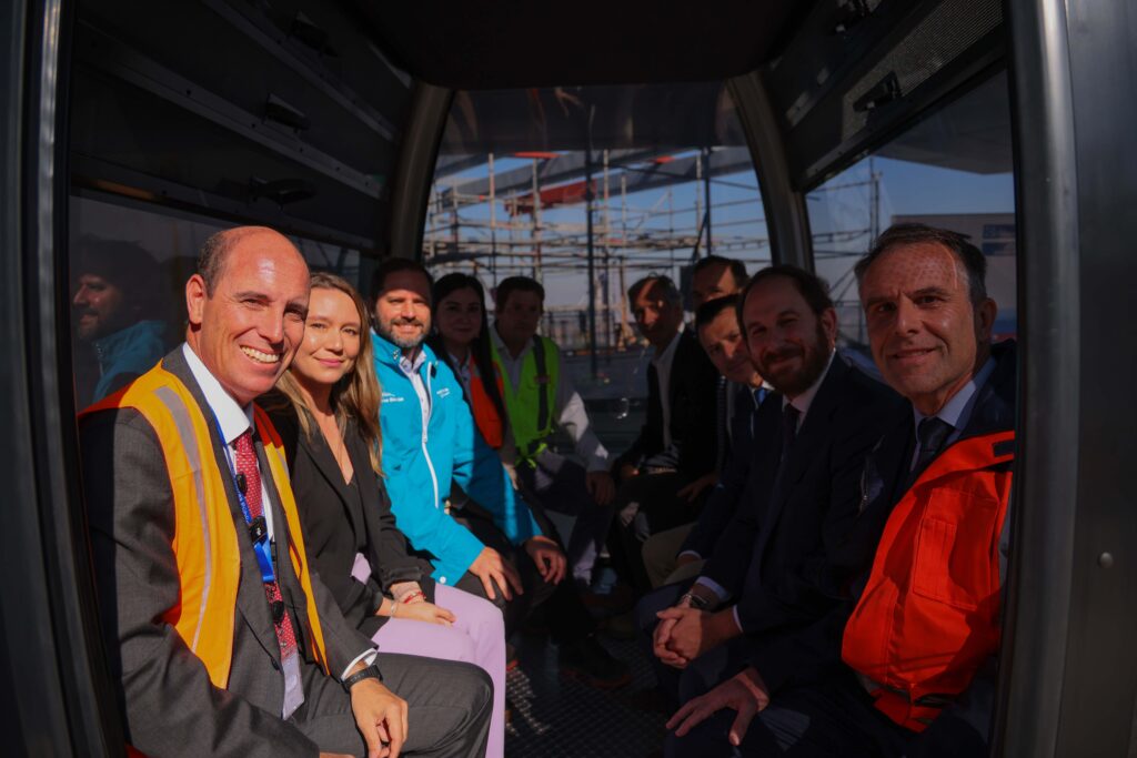 Santiago, miércoles 25 de marzo de 2026.- En el marco de la construcción del proyecto concesionado Teleférico Bicentenario, el ministro de Obras Públicas, Martín Arrau, supervisó esta mañana las primeras pruebas técnicas de recorrido de las cabinas de pasajeros del nuevo sistema de transporte que conectará en tan sólo 13 minutos Tobalaba en Providencia y Ciudad Empresarial en Huechuraba.