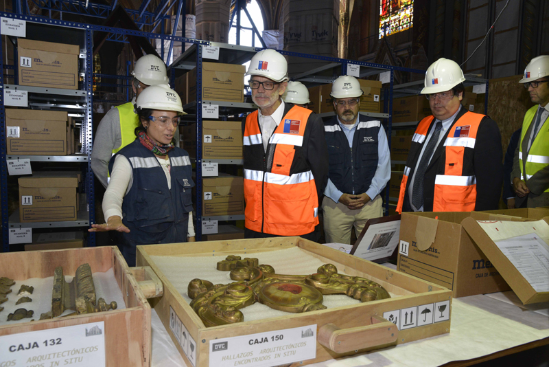 Según destacó el Ministro Fontaine adicionalmente hay un equipo de restauradores que trabaja en el rescate de los vitrales y de las distintas piezas que se han visto afectadas por los terremotos. En total hay 500 partes que han sido almacenadas en cajas protegidas y otras partes dañadas se están guardando para efecto de que se reamen cuando comience la restauración.