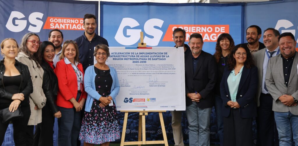 Con el objetivo de fortalecer la resiliencia urbana frente al cambio climático y dar respuesta a zonas históricamente afectadas por inundaciones, la ministra de Obras Públicas, Jessica López; el gobernador de Santiago, Claudio Orrego; el director del Serviu Metropolitano, Roberto Acosta, firmaron el Convenio “Aceleración de la implementación de Infraestructura de aguas lluvias en la Región Metropolitana de Santiago 2025–2030”, que considera una inversión total de $17.542 millones.