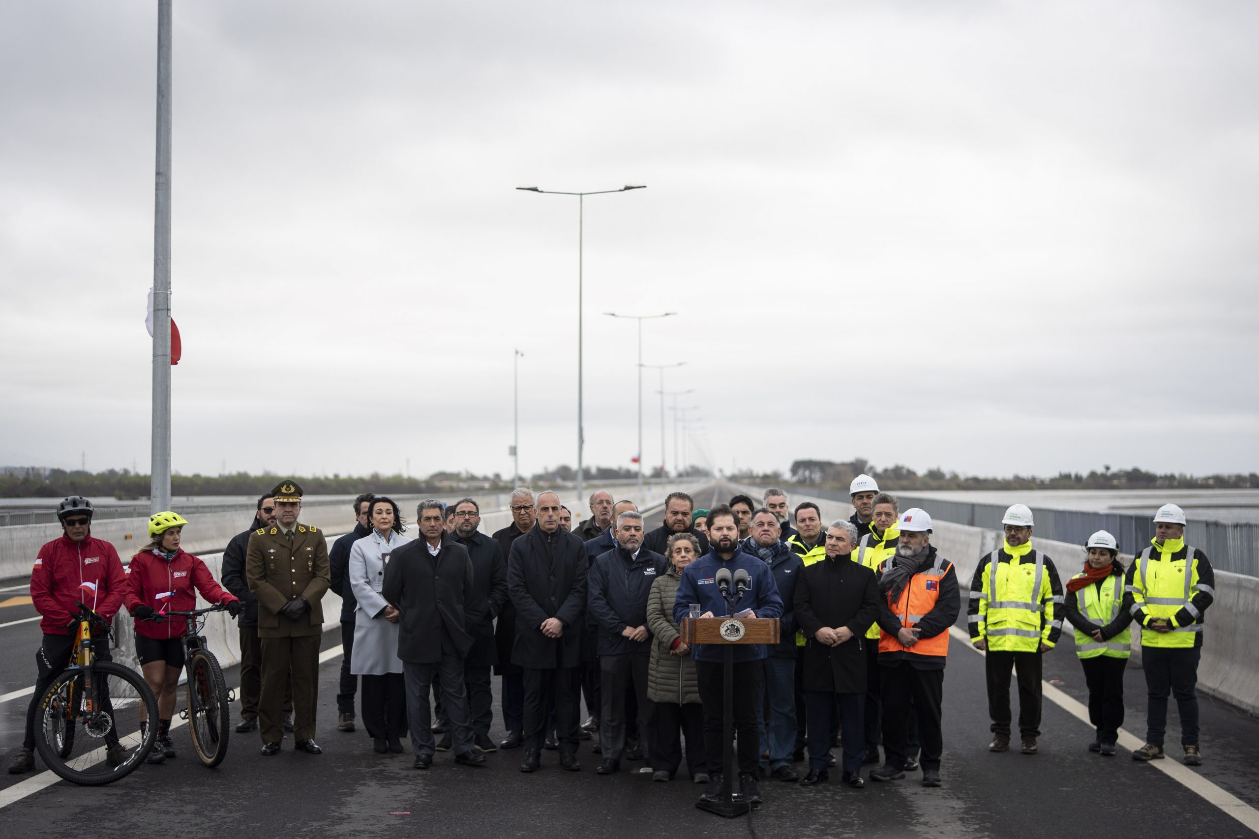 El Presidente de la República también destacó el alcance nacional de esta nueva obra: “Este puente, además, beneficia a todo el país porque permite conectar sectores productivos, fortalecer el transporte de carga y potenciar la logística vial con los puertos de Lirquén, de Talcahuano, de San Vicente y de Coronel. Se embarca también en una estrategia más grande, que tiene que ver con el Plan de Fortalecimiento Industrial del Biobío”.